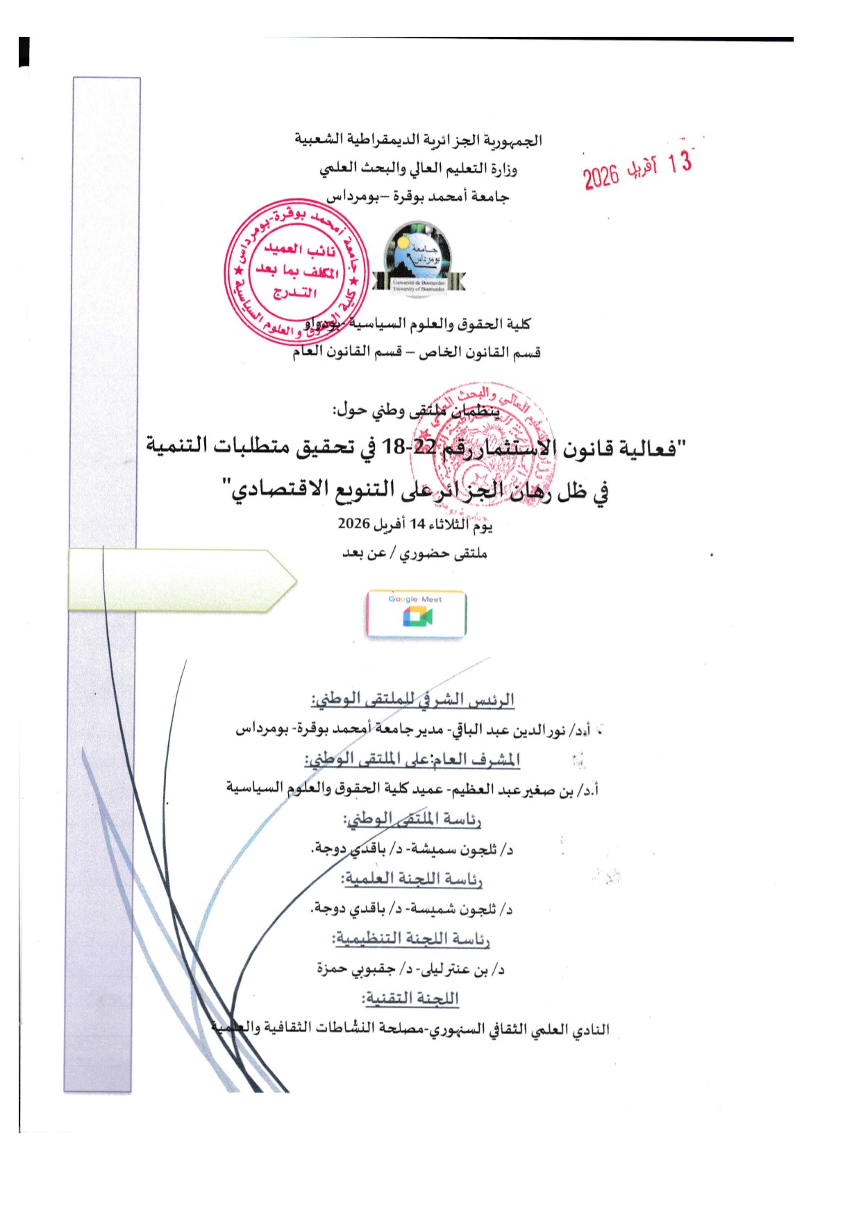 ملتقى وطني Posted by admfdsp Categories Blog Date April 13, 2026 تحميل برنامج الملتقى Share: admfdsp Previous post آجال دراسة ملفات الترشح للحركية بالخارج 2026 April 13, 2026