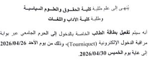 كل ما يخص الطلبة :برنامج الإمتحانات..التوقيت الدراسي ..أفواج الطلبة
