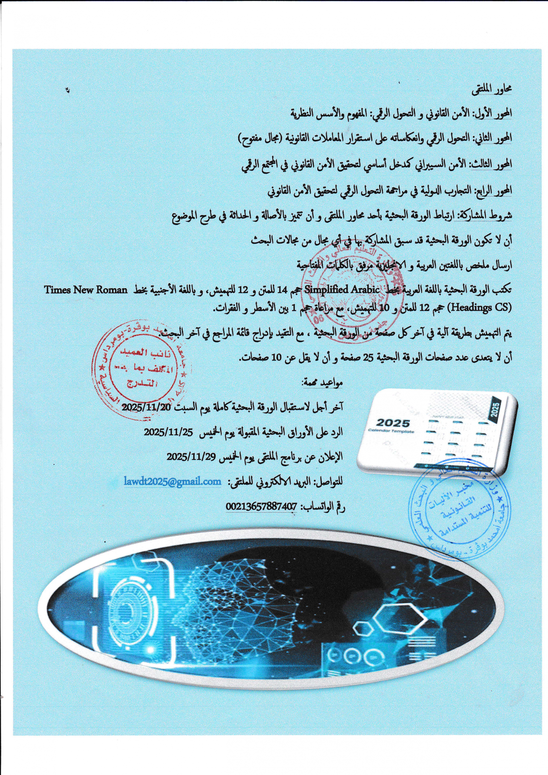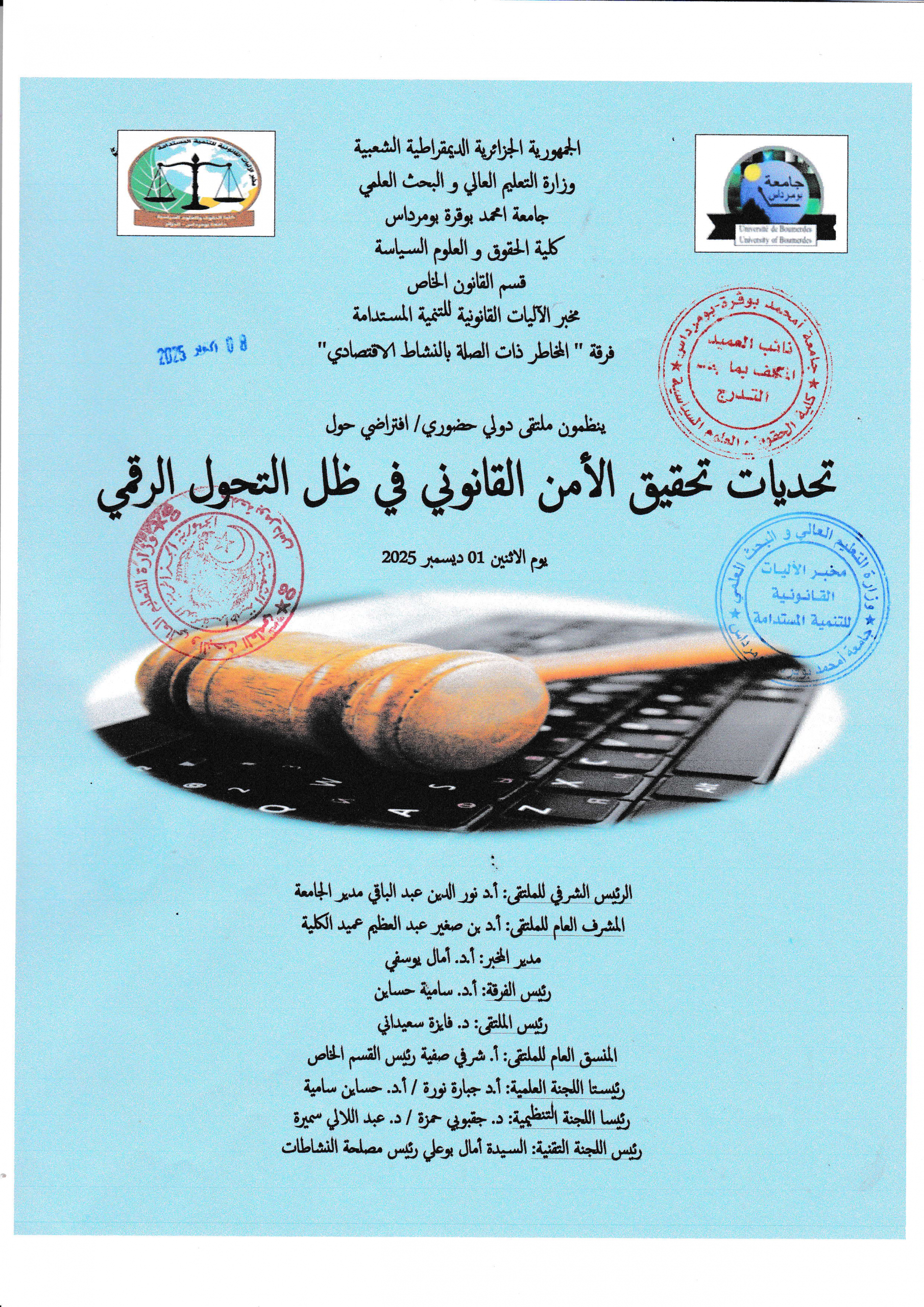 Navigation de l’article برنامج الملتقى الوطني حول « دور القطاع العام الاقتصادي في تحقيق التنمية المستدامة » يوم 01 أكتوبر 2025 برنامج الملتقى الوطني حول » الأمن القومي الجزائري في ظل التحولات الجيوسياسية الجديدة في منطقة الساحل الإفريقي : الرهانات و التحديات »يوم 28 أكتوبر 2025