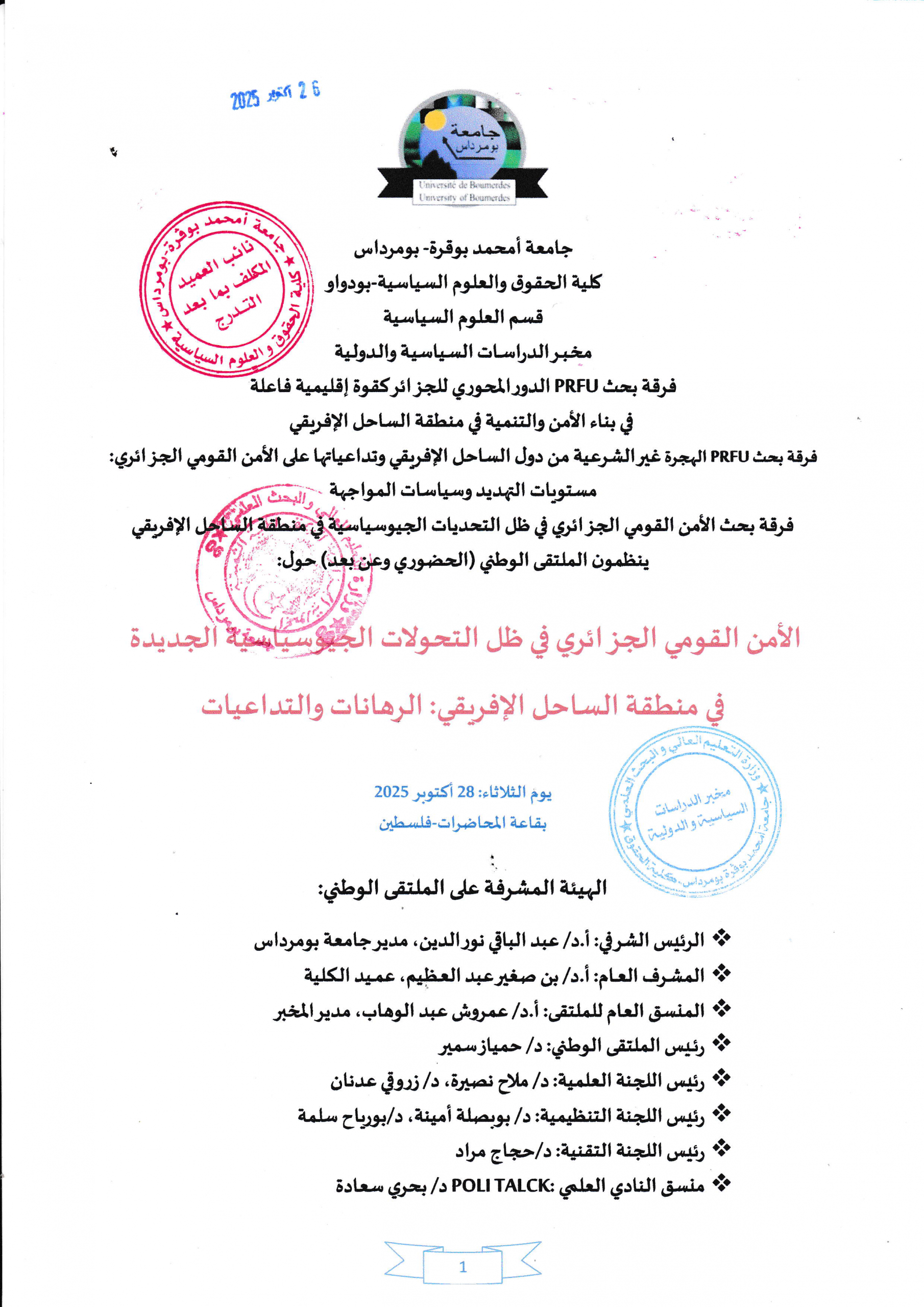 Navigation de l’article ملتقى دولي حول » تحديات تحقبق الأمن القانوني في ظل التحول الرقمي » يوم 01 ديسمبر 2025